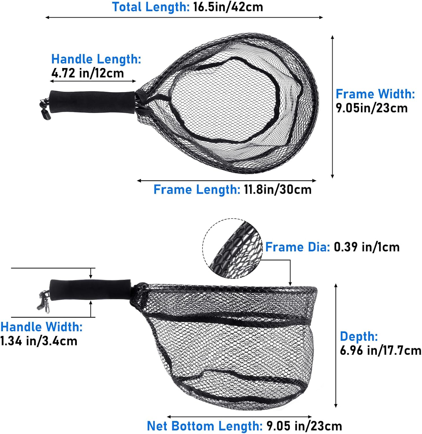 Fishing Net with Handle, Rubber Coated Landing Net with Foldable Aluminum Frame, Minnow Net, Small Fishing Net, Easy Transportation Storage for Kayak, Fly, Catfish, Bass, Trout Fishing