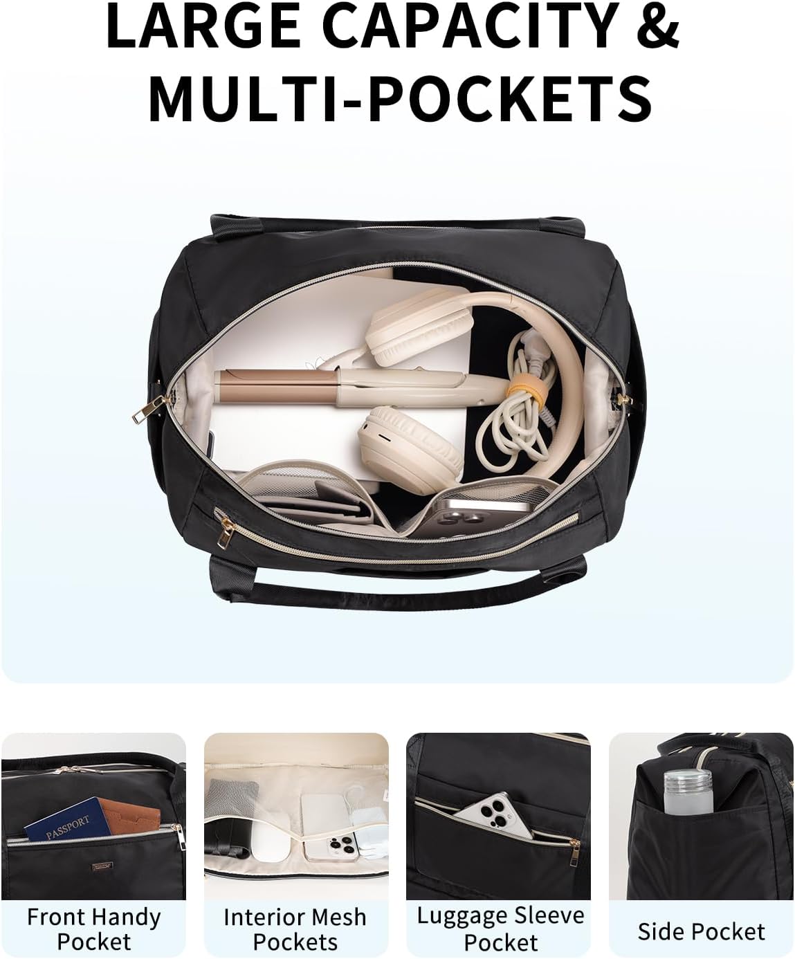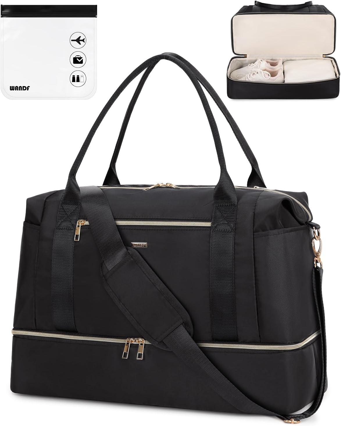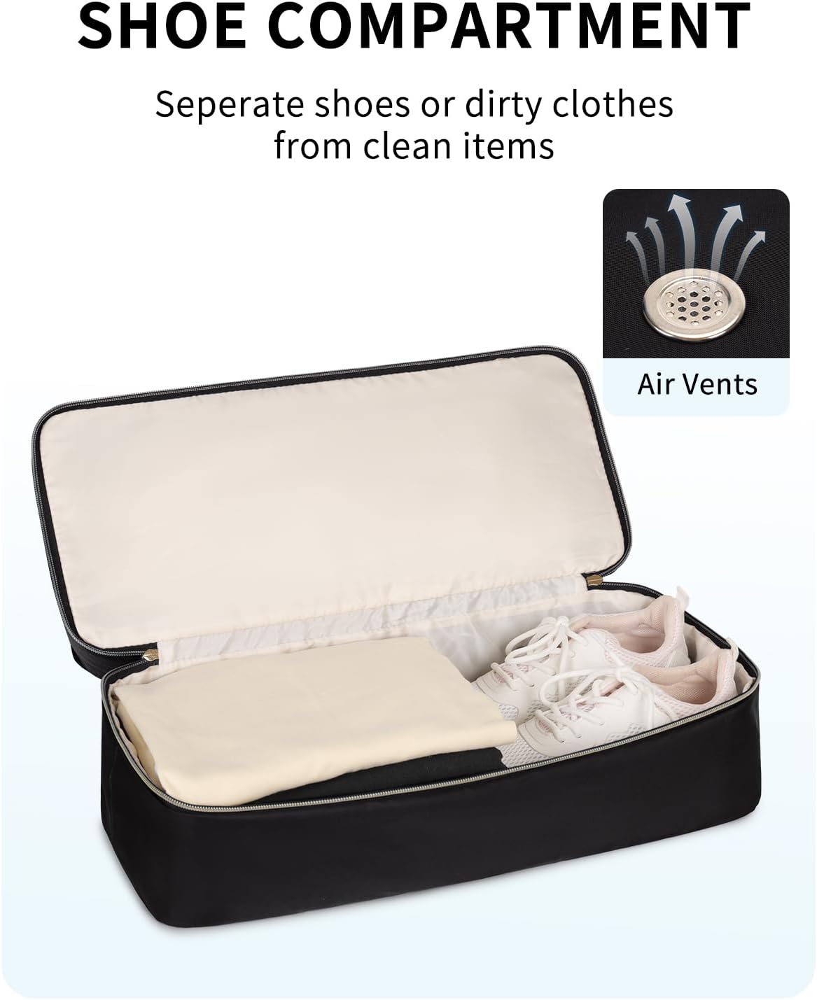 This innovative bag features a convenient wet pocket, perfect for storing damp or dirty items separately from your clean belongings. The built-in shoe compartment allows you to keep your shoes organized and separate from your other items, ensuring everything stays neat and tidy throughout your journey.